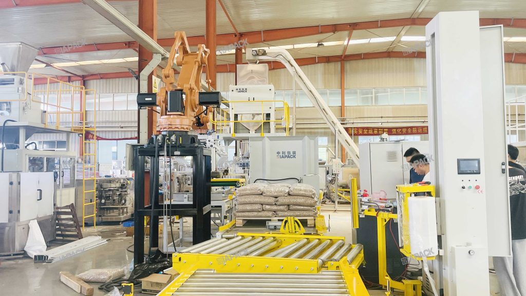 Recentment, la nostra empresa ha completat un conjunt de línies de producció totalment automàtiques de pesatge de partícules de fusta de 15 kg, fabricació i embalatge de bosses i paletització tal com estava previst. Després d'una prova conjunta d'enginyers mecànics i enginyers de programari, la màquina va ser enviada al país de destinació Corea del Sud el 4 d'agost.