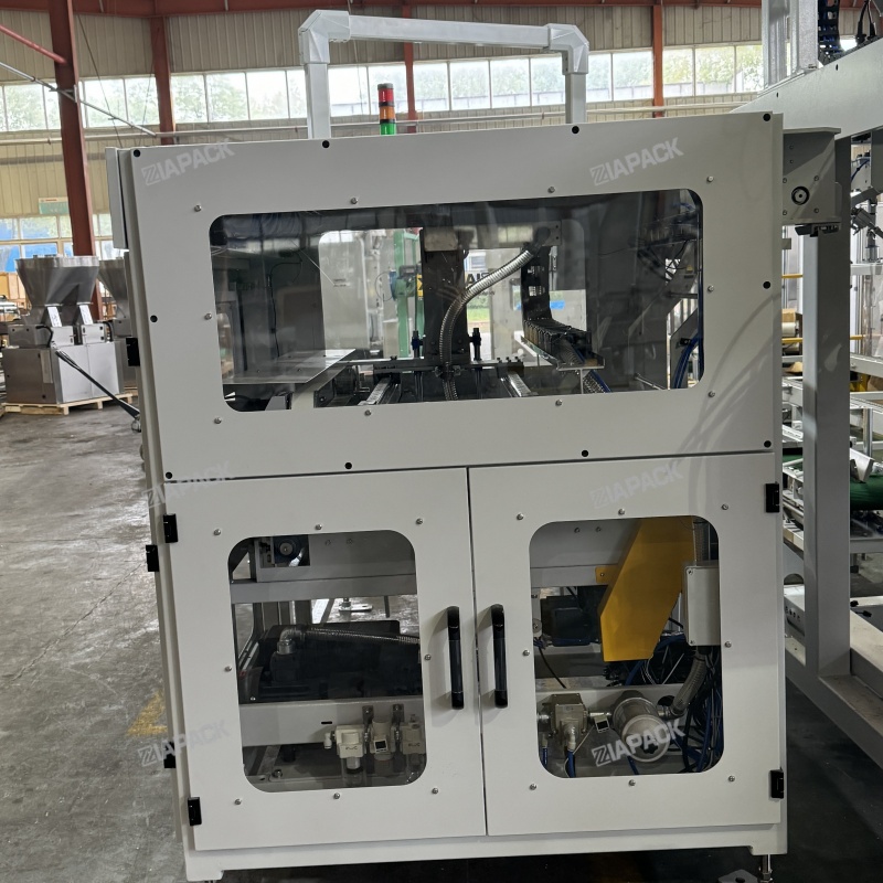 This unit consists of a bag storage bin, bag taking and sorting device, bag loading robot, bag clamping and unloading device, bag pushing device, bag mouth guide device, vacuum system and control system.