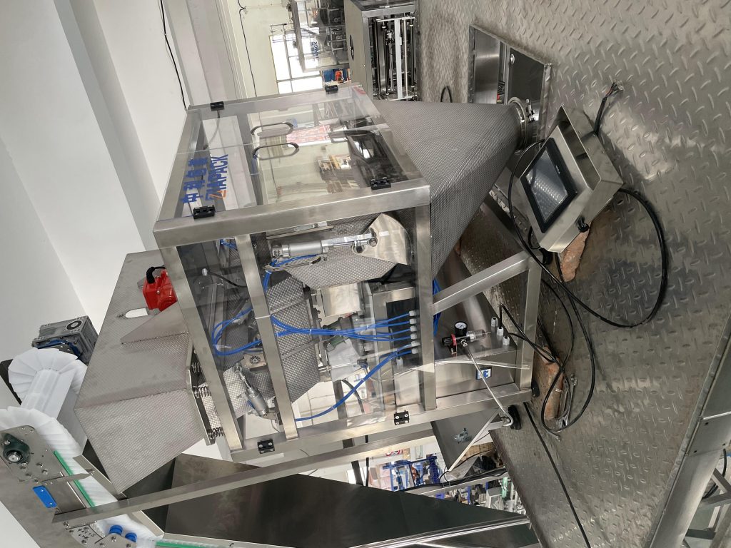 Aquesta màquina d'unitat té un disseny especial per envasar cubs de gel i tubs de gel en una bossa de plàstic suau. Amb funció d'alimentació de cubs de gel, pesatge, ompliment, segellat de formació automàtica de bosses i sortida de bosses plenes. La màquina principal té funció de recompte de bosses i codificació de data. .