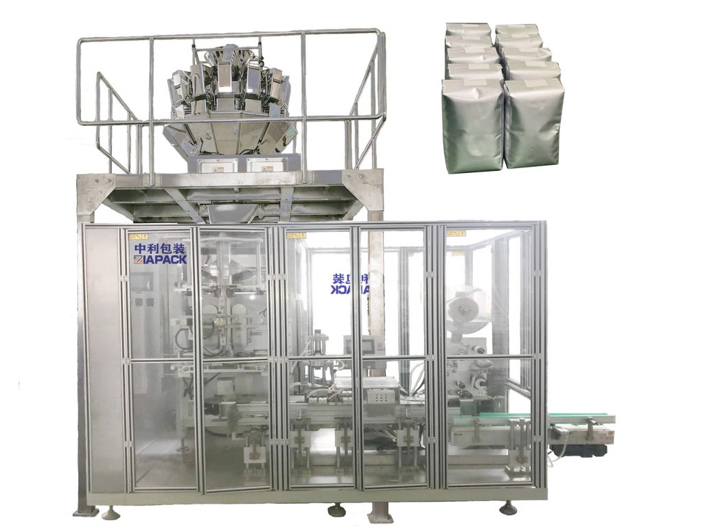 Tota la línia inclou un conjunt de màquines de segellat d'ompliment de formació de bosses vffs, una màquina d'embalatge de bosses d'adhesius superior, una màquina de control de pes i una màquina transportadora de tampó i una màquina d'embolcall de pel·lícula retràctil. i deformació. Hi ha una funció addicional opcional per al buit de la bossa que es pot afegir a aquesta màquina de la unitat.