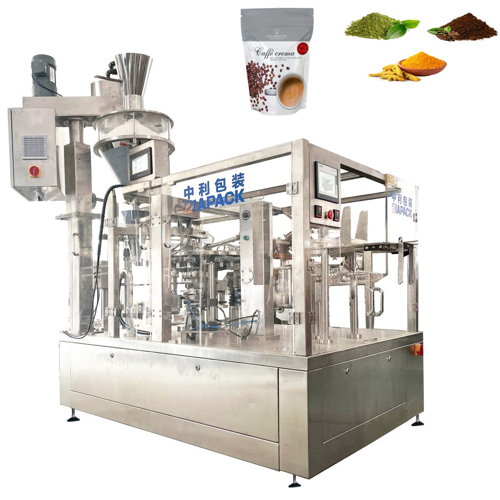 Màquina d’embalatge donada per bossa rotativa amb dosificació diferent (com ara pesadora de múltiples capes, farcit de cocutera, farcit de líquids, etc.), pot ser adequada per a l'embalatge automàtic per a grans, pols, líquids, pasta, etc. així successivament.