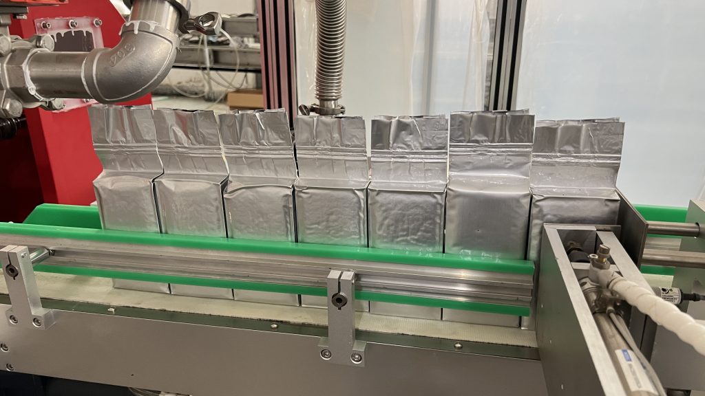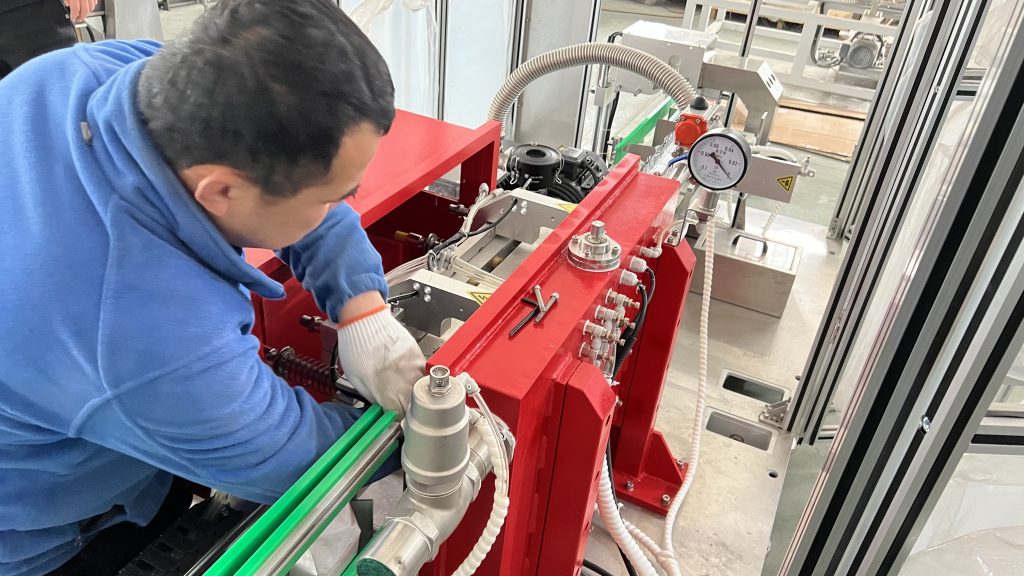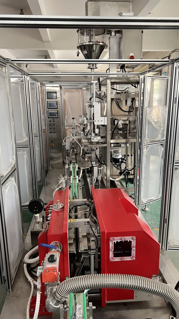 El nostre client de l'Iran havia demanat un conjunt de bosses de buit de maó automàtics que formaven una màquina d'envasat d'ompliment per a cafè en pols de 250 grams. I seguiu el requisit del client que havíem pintat la cambra de buit perquè fos de color vermell com a advertència.
