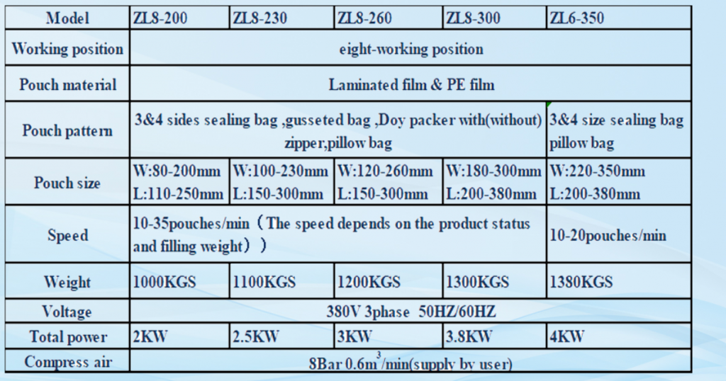 - La velocitat d'aquesta màquina s'ajusta mitjançant la conversió de freqüència amb el rang, i la velocitat real depèn del tipus de productes i bossa