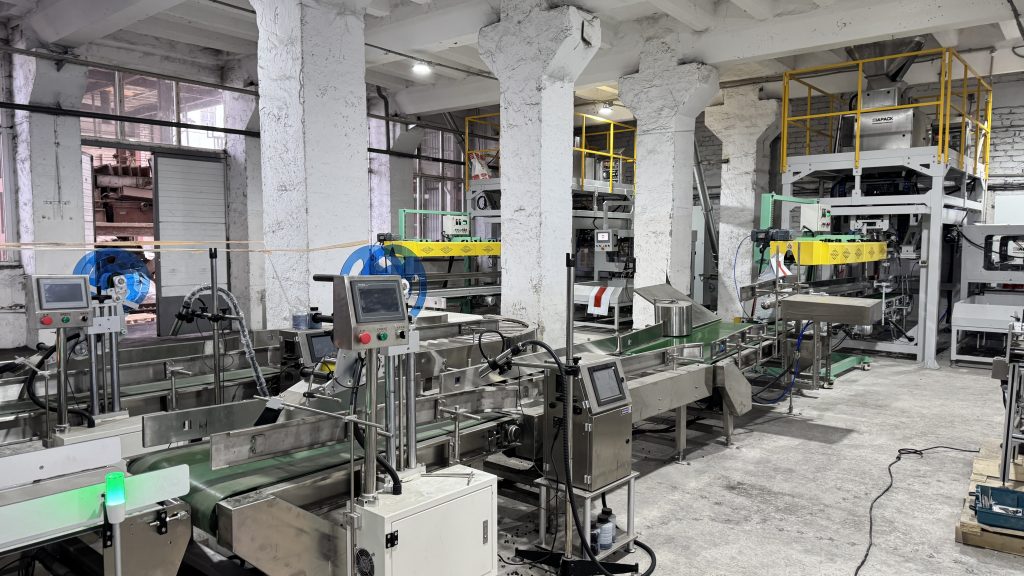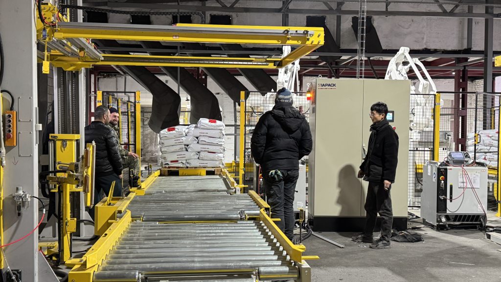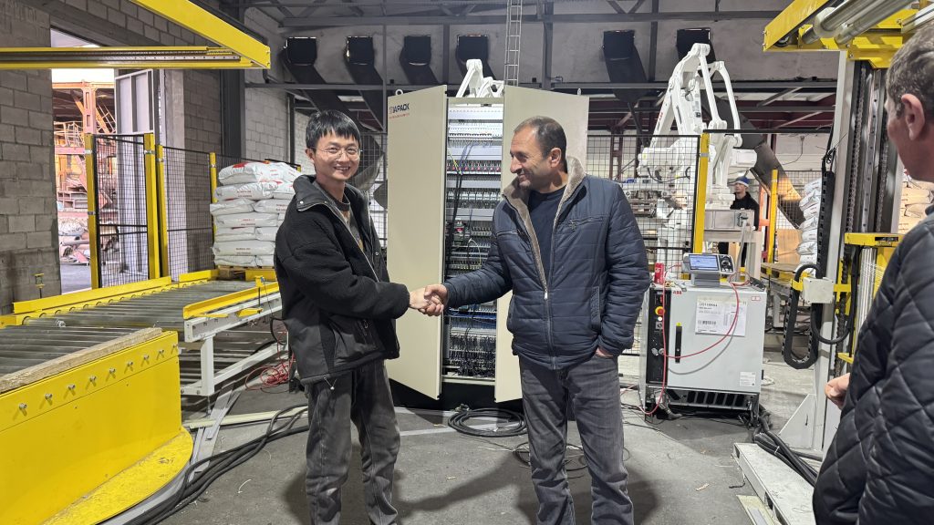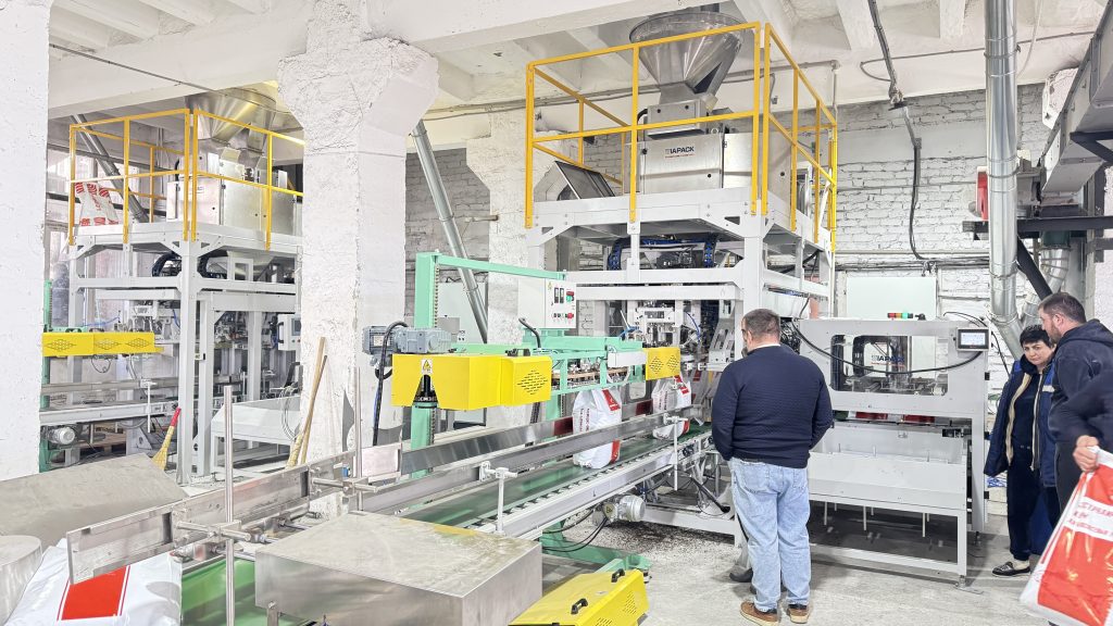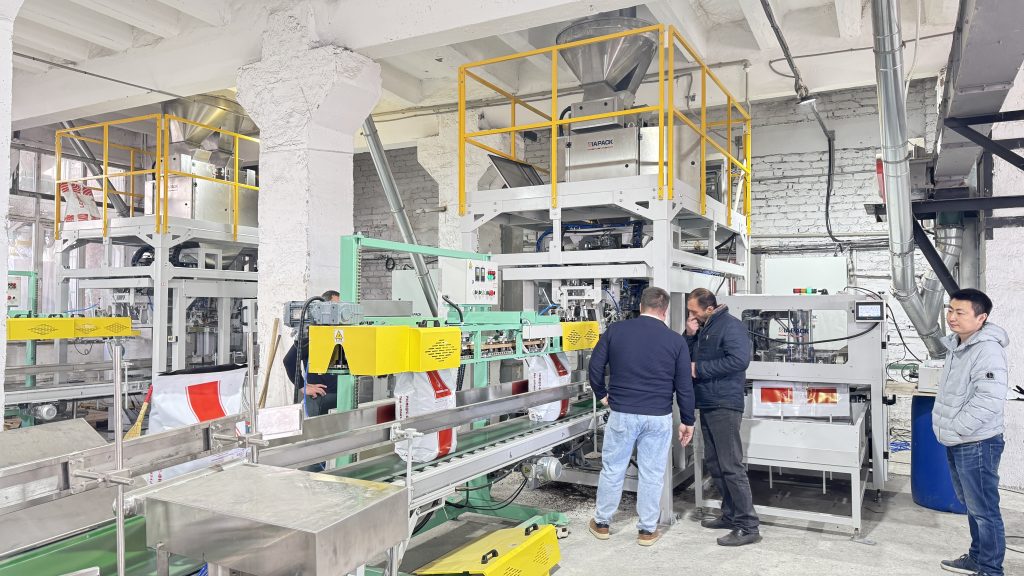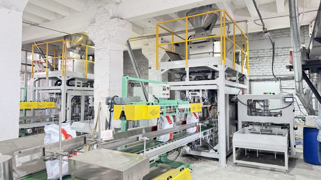 Estàs aquí: Inici » Notícies » Two units 25kg pet food automatic weighing bagging conveying and palletizing line start running in our client factory
