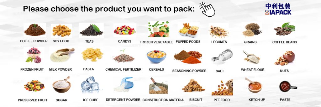 És adequat per a productes de granulada, trossos, escates, com aperitius, formatges, pastes, dolços, aliments per a mascotes, aliments congelats IQF ...