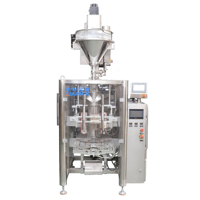 Aquesta màquina té un disseny especial per envasar productes en pols a la bossa de fons del coixí. S'utilitza àmpliament per envasar farina de blat i pols química. Aquesta unitat de màquina inclou una màquina d'ompliment de barrena ZL2000, una màquina d'ompliment vertical ZL520 per formar bosses. Un conjunt Boca oberta màquina de transport de bosses i sistema de control. Tota la màquina controla per PLC i funciona amb pantalla tàctil en color.